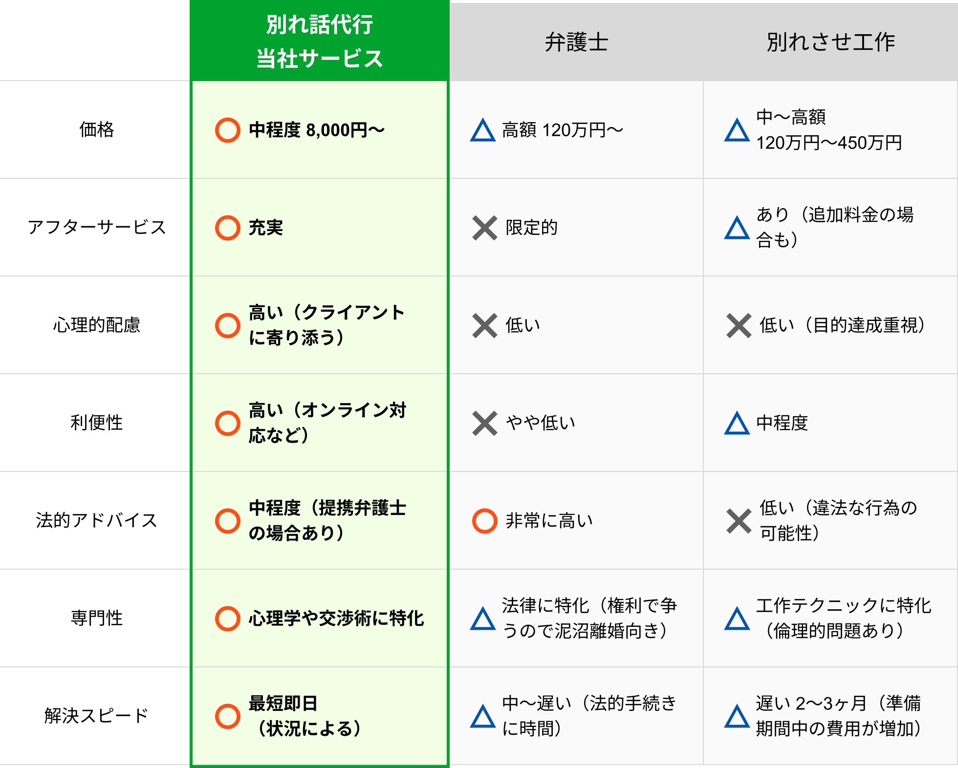 お客様は面倒な別れ話のプロセスから解放され、新しい人生のステージに進んでいくことが可能となります。